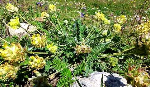 多年生草不,高15〜20厘米。基部有分枝,疏生白色长柔毛,间有黑色短柔毛。单数羽状复叶,长5〜10厘米;叶轴上面具沟,密生白色间黑色长柔毛;托叶卵状披针形,基部连合,与叶柄分离;小叶 13〜25 ,卵状矩圆形至披针形,长8〜13毫米,宽4〜6毫米,先端渐尖,基部圆形,两面有密长柔毛。总状花序近头状,腋生;总花梗长5.5〜15 厘米,有白色间黑色长柔毛;花萼钟状,长约9 毫米,宽约3亳米,密生 黑色间有白色长柔毛,萼齿条形,与筒部近等长;花冠黄色,长约12毫 米。荚果长椭圆形或矩 圆状卵形,长8〜12毫 米,膨胀,密生黑色长柔毛。