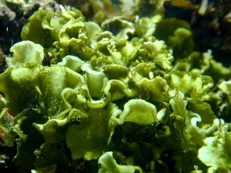 藻体黄绿色,长10〜30厘米,可达40厘米。体近似卵形,边 缘常略有波状,或呈广宽的叶 片状。体厚在45微米上下。生长在海湾内、中潮带及低 潮带的岩石上或石沼中。分布 浙江至广东海南岛沿岸;黄渤海沿岸稀少。