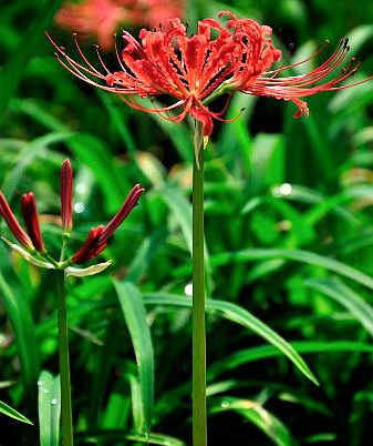【原植物】石蒜ra&at^L’Her.) Herb,又 名:水麻(《本草图经》),酸头草(《世医得效方》),一枝箭(《惠济方》),蒜头草、婆婆酸(《纲目》),蟑螂花(《纲目拾遗》),龙爪花、新米夜晚花、毛蟹花、野水仙、红花石蒜、三十六桶。