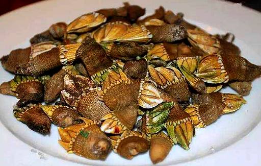 为大型的有柄蔓足类。雌雄同体。体分头状部和柄部; 全形很象龟脚。头状部宽3廑米,高2厘米,呈淡黄绿色, 由8块大的主要壳板及基部24片小 型壳板所成,每壳的表面都有明显的 生长线;小壳板片数随个体而增减。柄 部长宽各约3厘米,软而黄褐色,外表 被细小的石灰质鳞片,排列紧密,全体以腹面向上,头部皮肤呈折皱状,伸长 以包体部,形成外套。触角退化;口器有大颚1对,小颚2对。胸部有显著的胸肢6对,顶端弯曲如蔓。以柄部固着于海水澄清的岩石隙缝中,常密集成群。时以蔓足伸出壳外,摄食小动物。分布东海、南海和台湾。