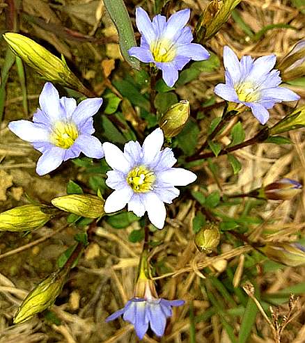 【异名】蓝花地丁、紫花地丁 (民间常用草药汇编》), 岩龙胆(《种子植物名称》), 鬼点灯、六月绿花草、绿花草 (《四川中药志》),米布带(成都《常用草药治疗手册》)。