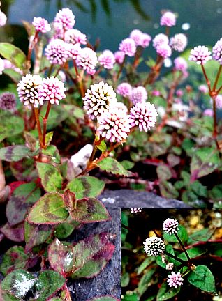 多年生草本。茎蔓延,先端斜升向上,表面红色,节处着生柔毛。叶互生,椭圆形,长2.5~5厘米,宽1~2厘米,先端急尖,基部楔形,全缘,具缘毛,边缘及叶背往往带红色;叶柄带红色,长约1~3毫米,基部具耳,包茎;托叶鞘状,先端平整,被长柔毛。总状花序直立,近球形;花被淡红色,5深裂,裂片椭圆形,先端略钝,长约2毫米;雄蕊8,花丝白色,透明,腺体黄绿色,长圆形,位于花丝基部,花药淡蓝色;子房上位,绿黄色,表面光滑,花柱上部3裂,柱头球形。瘦果包于宿存的花技内,卵形,具3棱,光滑无毛。花期8~10月。果期9~11月。