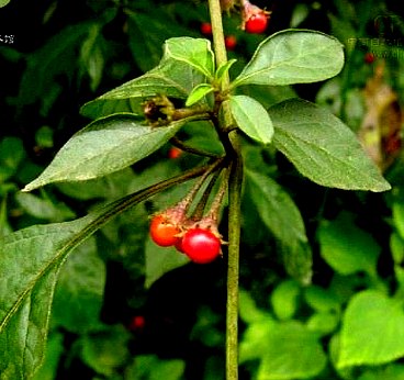 多年生草本,无毛或几乎无毛,高90厘米。茎分枝,斜开, 绿色。单叶互生或成对;叶片长椭圆形或椭圆形,长8〜18厘米,宽4〜10厘米,两端锐尖,全缘,或有不明显的粗波状齿。花小,腋生,3〜 5朵簇生;花梗细,下垂, 结果时上端肥厚,长15〜 26毫米;萼5裂,截缘,无毛;花冠淡黄色,钟状,径约8毫米,裂片5,披针状 三角形,先端截头,反卷; 雄蕊5,药黄色,2室,花丝 细长;雌蕊1,花柱较花丝短,柱头头状。果实球形, 径7〜10毫米,熟时红色。 花期6〜7月。