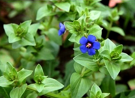 一年生或二年生或二年生草本,无毛。茎丛生,分枝,有四棱,高10〜30厘米,稍淡绿白色。单叶对生;卵形至狭披针形,长 1〜2.5厘米,宽5〜15毫米,先端尖或稍钝,基部浑圆,全 缘,纸质,无柄,包茎。花单生叶腋,花梗长2〜3厘米,无苞;萼裂5片,线状披针形,长4〜6毫米,锐尖;花冠 通常青紫色,偶红色,直径 1〜1.3厘米,裂片5,倒卵圆形,展开,往往微有缘毛;雄 蕊5,花丝有毛;子房上挝,无毛,花柱丝状。蒴果球形,径约4毫米。种子暗棕色,密 生瘤状突起。花期3〜5月。 生于原野、田边、湿地。分布我国东南部。