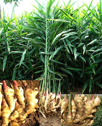 【备考】1.《本草图经》:“生姜,生犍为山谷及荆州、扬 州。今处处有之,以汉、温、池州者为良。苗高二、三尺,叶 似箭竹而长,两两相对,苗青,根黉,无花实。秋采根,于长 流水洗过,日晒为干姜。”