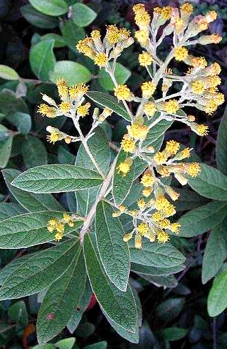 落叶灌木。高至1米多,直立,枝条粗壮,被绵毛。单叶互生;狭矩圆形至近倒卵形,长7~10厘米,先端渐尖至钝形,边缘有小锯齿,基部浑圆至广楔形,叶面绿色,有腺点,被粗毛,背白色,密被绢毛或绵毛。头状花序顶生或近顶的腋生,组成稠密的伞房花丛;总苞片数列,矩形至广披针状,长3~7毫米,宽1毫米,被短毛,边缘膜质.成熟后反卷;花托秃裸,有窝点;舌状花冠前端每为3裂,管状花冠5裂,黄色;雄蕊5枚,花药基部矢形,有长尾;子房下位,1室,柱头2裂。瘦果长约1.5毫米,被绢毛;冠毛白色带浅黄色。花期7~8月。果期11~12月。全年可采。