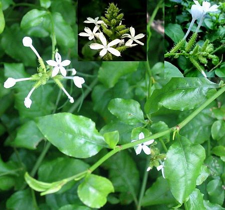 【别名】山坡芩、假茉莉、总管(《生草药性备要》),千里及、乌面马(《植物名汇》),白雪花(《广州植物志》),野苜莉、隔布草(《福建民间草药》),千槟梅、照药(《广西药植图志》),天槟榔(《南宁市药物志》),白皂药、白花皂药(《四川中药志》),一见消(广州部队《常用中草药手册》),白花岩陀(《云南中草药》)