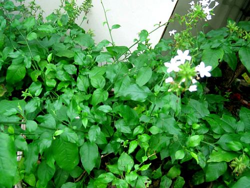 ⑧治脚底硬结疼痛(胼胝):白花丹鲜叶一握,稀饭一撮,食盐少许,捣烂涂贴,日换一次。(《福建民间草药》)