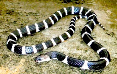 ②银环蛇,又名:银报应、寸白蛇、多条金甲带、白节蛇、手巾蛇、断肌甲。