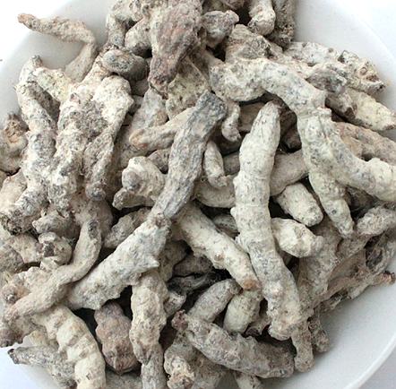 ④治头风:白僵蚕(去丝、嘴)、良姜等分。为细末。每服半钱,白梅茶清凋下,临发时服。(《百一选方》)