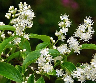 落叶灌木或乔木。嫩枝和叶背通常疏生白色毛。叶纸质,卵状椭圆形或倒卵状椭圆形,长3~9厘米,宽2~3.5厘米,先端尖或短渐尖,基部通常阔楔形,边缘具内曲尖锐锯齿;叶柄长约4~5毫米。花白色,稍有芳香,成顶生或腋生的圆锥花序。萼外无苞;萼片5,有睫毛;花瓣长圆状椭圆形,长约5毫米;雄蕊约25枚,长短不一,有较花瓣稍短或梢长的;花柱约与雄蕊等长,柱头不分裂。核果斜卵状球形,蓝黑色,长约6毫米,顶端5萼齿宿存。花期5月。果热期7月。