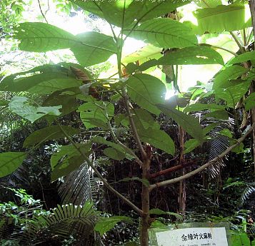 【原形态】乔木,树皮灰白色,高5~10米。叶纸质,互生,阔卵圆形,基部心脏形,长10~20厘米,宽8~10厘米;叶柄微紫红色。总状花序腋生,绿色。果实扁圆,紫黑色。枝、叶、花序均有小刺毛。有毒,其刺毛触及皮肤即可引起肿痛。
