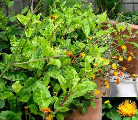【原植物】白子菜,又名:鸡菜。多年生草本,高30~50厘米。根茎块状。茎紫红色,被短毛。叶根生;长卵形成矩圆状倒卵形,长9~15厘米,宽8厘米,先端钝或短尖,基部楔尖,有时有两耳,叶缘具不规则缺刻及锯齿,并有灰白色短缘毛,上面绿色,秃净或疏被灰白色短毛,主脉上较多,下面浅绿色或紫红色,主脉突出,上被疏短毛,网脉干时呈黑色;叶柄短或无。花茎根出,疏被短毛。头状花序顶生,数朵,径1~1.5厘米;总苞2轮,缘状披针形,外轮短,疏寓,内轮覆瓦状排列,倍长于外轮,疏被灰白色短毛;花全部管状,金黄色;雄蕊5,花药联合,内藏,着生于冠管的1/2处;雌蕊花柱细长,外露,柱头2裂。瘦果成熟时深褐色,有线条,冠毛白色。花期春束至冬初。秋、冬采挖,洗净晒干。