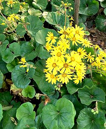 多年生草本,高50~100厘米。茎直立,较粗,圆柱形,有浅棱,密生白色蛛网状毛,上部较密。基生叶具长柄,肾形或心脏形,边缘微波状,具稀疏浅齿,两面疏生蛛网状毛;茎生叶较小,叶柄扩大成鞘抱茎;近花序的叶阔倒卵圆形。头状花序5~9枚,黄色,排列成伞房状;总苞矩圆状,基部有小总苞片5~7枚,披针形;外轮花舌状,雌性;内轮花两性,雄蕊5枚,柱头2裂。瘦果,有棱条,冠毛棕红色。花期7~10月。果期9~11月。6~11月采收。