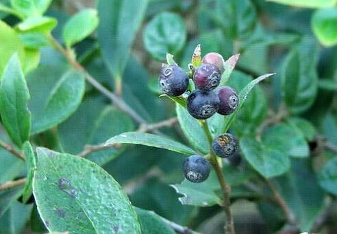 常绿灌木,高1~3米,多分枝。枝条细,灰褐带红色,幼时带有点状微毛,老时脱落。叶互生;卵状椭圆形至狭椭圆形,长3~6厘米,宽1~3厘米,边缘具稀疏尖锯齿,基部楔形,先端锐头,革质,有光泽,中脉有短毛;叶柄短而不明显。总状花序腋生,长2~5厘米,具有10数花,微具毛;苞片披针形,长1厘米,边缘具不明显锯齿;花柄长0.2厘米,具绒毛;萼钟状,5浅裂,外被绒毛;花冠白色,壶状,长5~7毫米,具绒毛,先端5裂片反卷;雄蕊10,花药先端伸长成管状,花丝有白茸毛;子房下位,花柱长6毫米。浆果球形,红色,成熟时紫黑色,直径约5毫米,萼齿宿存,内含白色种子数颗。花期6~7月。果期8~9月。