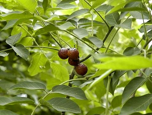 落叶乔木,高10~15米。枝有暗黄色皮孔,新生枝被暗黄灰色短柔毛。双数羽状复叶,互生,连柄长20~35厘米。小叶8~14,卵形至长椭圆形,长6~14厘米,宽2.5~6厘米,先端短尖,基部圆或钝,两侧不对称,全缘,两面沿脉被疏短毛。花杂性异株;圆锥花序顶生,长12~25厘米,与花柄同被短柔毛;花小,白色;萼片5,卵形,基部暗紫色,边缘近膜质,有缘毛;花瓣通常4,椭圆形或倒卵状椭圆形,长4~5毫米;花盘偏于一侧;雄蕊8。比花瓣短:子房密被毛。核果球形,平滑,径15~18毫米,果皮肉质;种子黑褐色,光亮。花期5~6月。果期9~10月。