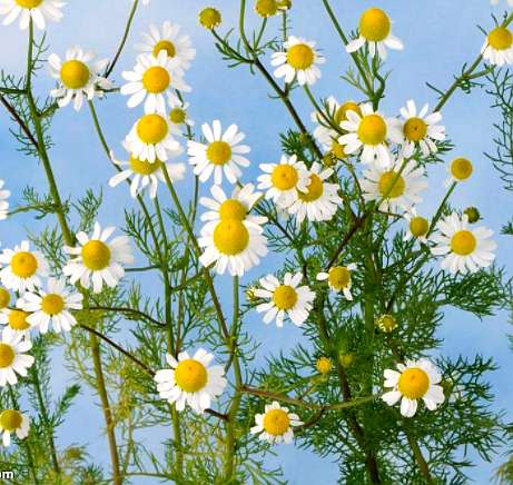 一年生草本,高30~60厘米。茎直立多分枝,光滑无毛。绿色。叶互生,2~3回羽状分裂,裂片短,窄线形。头状花序排列成伞房状,直径1.2~2.5厘米,着生于枝梢或叶腋,具花梗;总苞半球形;苞片4层,边缘膜质,舌状花1层,生于花序外围,雌性,白色,先端平截或微凹;其内为管状花,多数,两性,黄色,花冠先端4~5齿裂;花药基部圆钝;花托圆锥形,无托片。瘦果椭圆形,有3~5条细棱,无冠毛。花期5~7月。5~7月采取花朵或全草,晒干备用。16.01