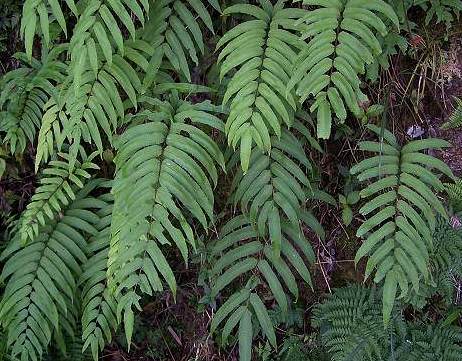 多年生草本,高70~130厘米.根状茎长而横走,粗壮,坚硬,径达1厘米,黑褐色,有纵槽沟。纤维根黑褐色,密被棕色柔毛。羽状复叶,远生;叶柄粗壮,长15~25厘米,稻秆色;叶片披针形或矩圆状披针形,长40~80厘米,宽18~30厘米,纸质;羽片6~9对,互生,长线形至狭线状披针形,长15~30厘米,先端渐尖,边缘有浅锯齿,基部广楔形,有短柄,侧脉羽状,细脉7~9对。孢子囊群圆形,近侧脉着生排成两行;无囊群盖;孢子两面形。秋季采收。