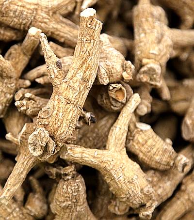 【采集】选取生长3~6年的根,于秋季挖采,除去分枝、须尾,晒干。喷水湿润,撞去外皮,再用硫黄熏之,晒干后,其色白起粉者,称为粉光西洋参。挖起后即连皮晒干或烘干者,为原皮西洋参。