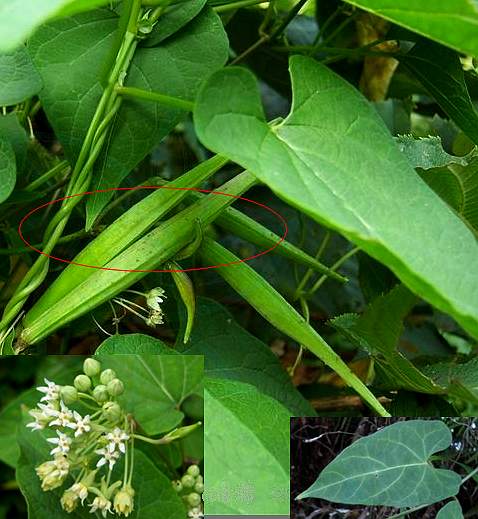 多年生草质藤本。根肉质,较粗,支根粗细相近。茎绿色,分枝;小枝纤细,被不明显的微毛。单叶对生;具柄;叶片厚纸质;心状卵形或心状圆形或近戟形,长4~10厘米,边缘浅波状,上面绿色,被极稀疏伏柔毛,下面灰白色或淡绿色,近无毛。伞形花序腋生;花萼5深裂,裂片卵状矩圆形,边缘有睫毛;花冠轮状,裂片旋转排列,内面有柔毛;副花冠的鳞片5片,肥厚膨大,肉质,先端分离;花粉块每室1个,下垂。??果,长角状,平滑。种子褐色,顶端有丝状束毛。花期5~7月。果期8~9月。17.51