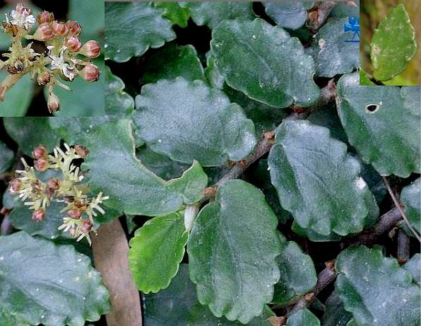 一年生草木。茎肉质,紫红色,光滑,匍匐,节下生根。叶肉质,在同一节上有2种叶:退化叶极细小,几无柄,线状倒卵形;正常叶甚大,斜卵形,长2~6厘米,宽1.3~3厘米,先端钝,有时急尖,基部心形,极不对称,边缘波状有圆齿,上面深绿色,下面淡绿色、红色或苍白色,在生活状态下两面均有无数白色小斑点,干时上面的线状钟乳体显著,尤以近边缘处更为密集,下面在叶脉上密被柔毛;托叶膜质,卵状披针形,长4~8毫米,2枚合生,宿存。花腋生,白色带红,雌雄异株;雄花序为疏散的聚伞花序,总花梗长5~8厘米,雌花序为密伞花序,总花梗近无;雄花萼片5,等大,雄蕊5;雌花萼片5,长圆形,近相等,顶端有小尖头;子房小于花萼,有小瘤体。瘦果淡棕色,有明显的硬瘤体。花期5~10月。17.73