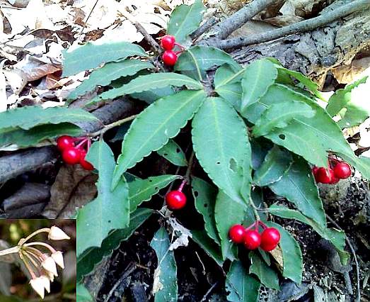 本植物的叶(朱砂根叶)亦供药用,另详专条。