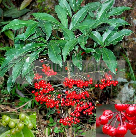 【化学成分】朱砂根的根含三萜皂甙:朱砂根甙(ardic-renin)[1],朱砂根新甙(ardisicrenoside) A、B,百两金皂甙(ardisi-acrispin)A、B[2],以及次生单糖甙3-O-α-L-仙客来甙元A-吡喃阿拉伯糖甙(3-O-α-L-cyclamiretin A-arabinopyranoside)[3],还含岩白菜素(bergenin)及其衍生物:11-O-没食子酰基岩白菜素(11-O-galloylbergenin),11-O-丁香酰基岩白菜素(11-O-syringyl bergenin),11-O-香草酰基岩白菜素(11-O-vanilloylbergenin),11-O-(3′,4′-二甲基没食子酰基岩白菜素)[11-O-(3′,4′-dimethyl-galloyl)bergenin][4],去甲岩白菜素(demethyl bergenin),以及无羁萜(friedelin),β-谷甾醇(β-sitosterol),紫金牛醌(rapanone)[5],胡萝卜甙(daucosterol),菠菜甾醇(spinasterol),含18~ 30个碳原子的系列脂肪酸、蔗糖(sucrose)[6]和一新颖的环状缩酚酸肽FR900359[7,8]。