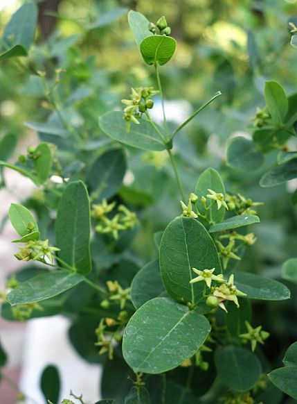 【备考】《植物名实图考》:“合掌消,江西山坡有之。独茎脆嫩如景天。叶本方末尖,有疏纹,面绿,背青白,附茎攒 生,四面对抱,有如合掌,故名。秋时梢头发细枝,开小紫花,五瓣,绿心,子繁如罂粟米粒。根有白汁,气臭。18.84