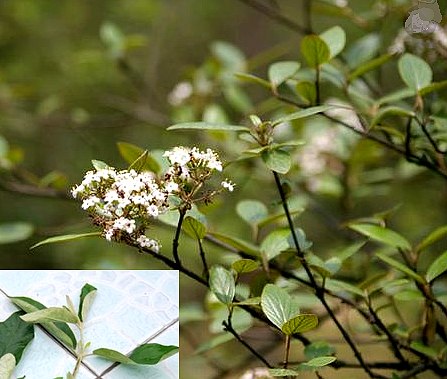 常绿灌木,高达2米。枝细长,圆柱形,密被灰白色或带锈色星状短柔毛。单叶对生;叶柄长0.5~2厘米,密被灰白色星状柔毛;叶片椭圆状卵形,长约4~12厘米,宽1.5~4厘米,先端钝,少有渐尖,基部圆形,全缘或呈微波状,上面暗绿色,微有光泽,下面密被灰白色星状短柔毛,叶脉5~10对,在下面隆起,基部的2对对生.顶生聚伞花序,常为5射出枝,花序直径4.5~9厘米,花梗有星状毛;花小,白色。径约8毫米;萼管短,5裂,宿存;花冠轮状,裂片5;雄蕊5,着生于花冠内;子房下位,1室,胚珠1,下垂。浆果状核果,卵圆形,略呈压扁状,乌黑色:种子1粒,压病状。花期5月。果期8~9月。