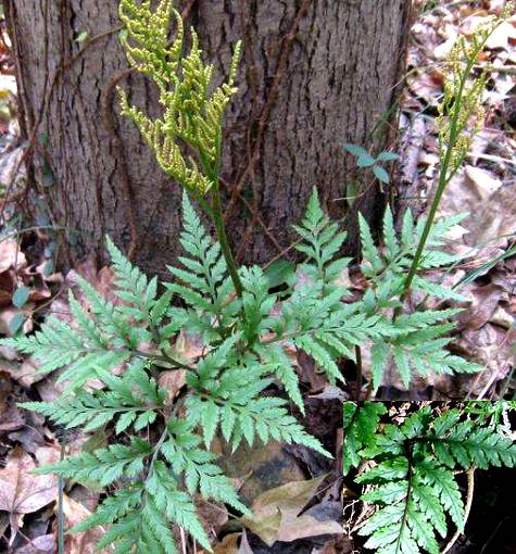多年生草本,高20厘米以上。根茎粗壮,肉质,有多数纤维状肉质根。营养叶的柄长3~8厘米,叶片三角形,长8~10厘米,宽10~12厘米,3回羽状分裂,最下羽片最大,有长柄,呈长三角形,其上各羽片渐次无柄,呈披针形,裂片长卵形至卵形,宽0.3~0.5厘米,有细锯齿,叶面无毛,质厚。孢子叶有长梗,长12~22匣米;孢于囊穗集成圆锥状,长5~10厘米,3~4回羽状分枝;孢子囊无柄,黄色,沿小穗内侧成两行排列,不陷入,横裂。