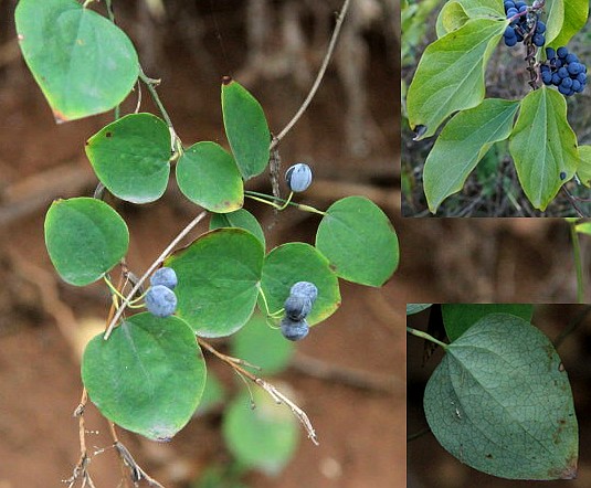 缠绕性落叶藤本。根圆柱形。茎木质化,长达3米左右,小枝密被灰白色细柔毛。叶互生;叶柄长1~3厘米;叶片广卵形,有时3浅裂,长3~14厘米,宽2~9厘米,先端锐尖至钝圆,有短尖头,全缘或微波状,基部微心形至近截形;两面有灰褐色柔毛。花小,黄白色,雌雄异株,聚伞状圆锥花序腋生;雄花萼片6,2轮,卵形至广卵形;花瓣6,卵状披针形,先端2裂,基部两侧呈耳状;雄蕊6,药短,近球形;雌花的萼片、花瓣与雄花相似,有退化雄蕊6,心皮6,分离。核果近球形,直径5~8毫米,熟时蓝黑色,被白粉,内有1枚马蹄状种子。花期7~8月。果斯9~10月。
