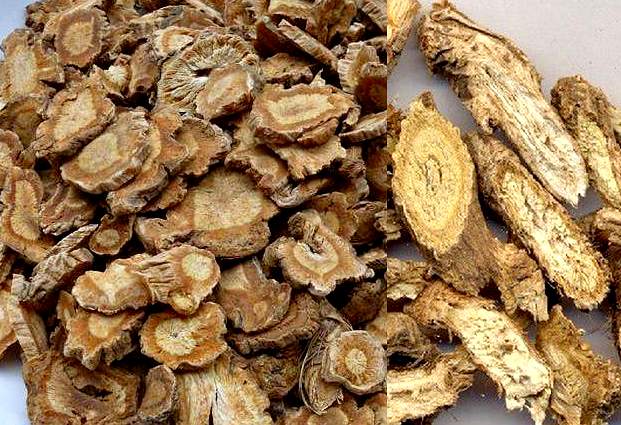 【药材】干燥的根,呈圆锥形或纺锤形,稍弯曲,长20~30厘米,根头部直径约1厘米,中部直径1~1.5厘米。表面灰黄色或灰棕色。根头部有密集的细环节,节上有棕色粗毛,顶端有茎的残痕;根部外皮皱缩而粗糙,有不整齐的纵皱及细横纹,除散生污黄色的横长皮孔外,点状突起的须根痕也随处可见。质松而软,易折断,断而不平坦,木部淡黄色,皮部黄棕色有裂隙,射线呈放射状。气微香,味微甘。以条粗壮、皮细而紧、无毛头、断面有棕色环、中心色淡黄者为佳。外皮粗糙、有毛头,带硬苗者质次。
