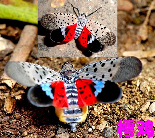 3.《本草衍义》:樗鸡,京东西京界尤多。形类蚕蛾,但头足微黑,翅两重,外一重灰色,下一重深红,五色皆具,腹大,此即樗鸡也。