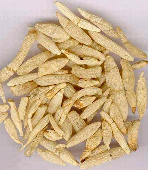 ②川麦冬:形状与杭麦冬相似而较短粗。表面乳白色,有光泽。质较坚硬;香气较小;味较淡,少粘性。