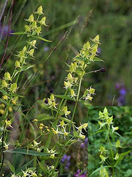 一年生草本,高20~50厘米。茎直立,自基部分枝,节间较叶长。叶对生,椭圆状披针形,先端尖,基部楔形,常具3脉;有短柄。聚伞花序腋生或顶生;花萼4裂,裂片披针形;花冠钟状,淡黄色,4深裂达中部以下,裂片基部有窝孔,延伸成一长距,形似船锚;雄蕊4,着生于花冠的近基部,花药丁字着生;子房1室,花柱短。蒴果卵形或长圆形,心皮分裂达基部。