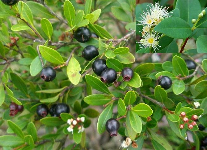 灌木,高1~6米。茎多分枝;树皮茶褐色;小枝四方形。叶革质,对生,偶有3片轮生,倒卵形或阔卵形,长1~3厘米,宽0.5~3厘米,先端钝,基部楔形,全缘,羽状侧脉细小,下面隆起,无毛,具散生腺点,叶具短柄。聚伞花序顶生或腋生,长2~4.5厘米;花白色;萼倒圆锥形,裂片4,短而钝;花瓣4,分离;雄蕊多数.浆果卵圆形,径6~10毫米,成熟时紫黑色,顶端冠以宿存萼檐;内有种子1颗。花期5~6月。果期9~10月。