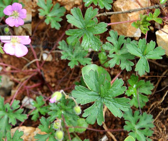 【原形态】多年生草本,高20~30厘米,全株被柔毛。主根圆锥形,紫色,有较长的须根。叶基生或茎生,叶柄长;叶片3~5掌状分裂,直径3~5厘米,有小羽状托叶。花1~2朵生于茎顶,红色,径约1.5厘米。蒴果长喙状,成熟后由基部向上反卷而开裂,将种子弹出后而悬挂于花柱上。花期夏季。