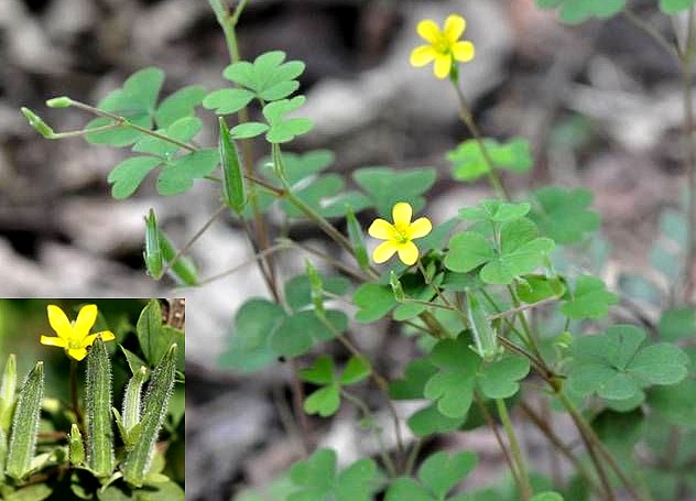 多年生草本,高20~40厘米。地下根茎细长,疏被鳞片。茎直立,或倾斜向上,被柔毛,折断时有酸汁。叶膜质,互生,叶柄长,纤细,掌状复叶;小叶3枚,倒心脏形,先端圆钝,有明显凹头,基部阔楔形,全缘,下面有毛茸或无毛,无小叶柄,叶片昼开夜合。春夏,枝梢、叶腋抽花梗,梗端生花1~4朵,稍呈聚伞状;花萼5裂;花瓣5枚,黄色,椭圆形;雄蕊10枚,花丝基部连合;子房由5心度构成,5室,花柱5枚,柱头头状。蒴果,近圆柱形,成熟时果瓣开裂,反卷,宿存于轴上,果梗亦向下反卷,与果实成锐角,开裂时有弹力。种子细小,卵形稍扁,褐色。