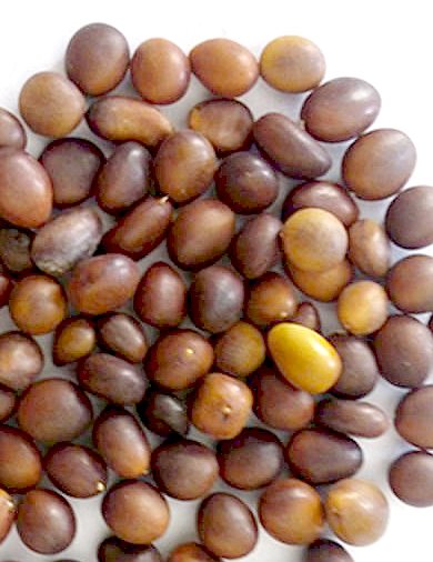 【性状】干燥种子呈长椭圆形,一端略狭尖,长11~13毫米,宽7~8毫米,厚约7毫米。表面棕褐色,平滑而带有光泽,较狭尖的一端有微凹的点状种脐,有时不甚明显,种皮剥落后,可见2片大形鲜黄色的子叶。质极坚硬,气微,味淡,以颗粒饱满、坚实、无杂质、无虫蛀者为佳。
