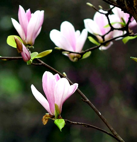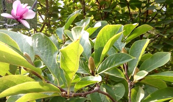 【备考】①<唐本草》:“辛夷,是树花,未开时收之,正月、二月好采....其树大连抱,高数仞,叶大于柿叶,所在皆有。实臭,不任药也。”②<本草衍义》:“辛夷有红紫二本,一本如桃花色者,一本紫者,今入药当用紫色者。”③<纲目》:“辛夷花,初出枝头,苞长半寸,而尖锐伊如笔头,重重有青黄茸毛顺铺,长半分许,及开则似莲花而小如盏,紫苞红焰,作莲及兰花香。亦有白色者,人呼为玉兰。又