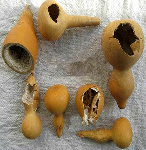 【采集】瓢瓜:秋末或冬初,采取老熟果实,打碎,晒干。苦葫芦:秋季果实老熟至外壳转黄时采下,用瓷片刮去外层薄皮后晒干。
