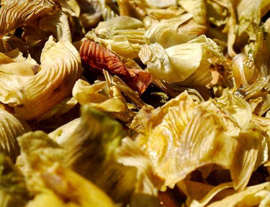 【性状】为不规则的长椭圆形的片状物,有明显的波浪式皱纹,长约5厘米,宽约3厘米,表面金黄色、黄褐色或黄绿色,老鸡的鸡内金则微黑。质薄脆,易折断,断面呈胶质状,有光泽。气微腥,味淡微苦。以干燥、完整、个大、色黄者为佳。