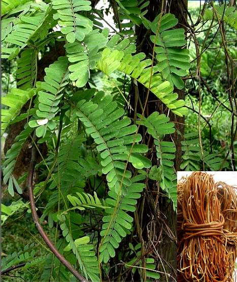 【性状】干燥的带根全草,多缠扎成束。根长短粗细不等,主根圆柱状或圆锥状,表面灰褐色,具纵横皱纹,侧根多与主根垂直横生;主根坚硬,不易折断。茎藤状,粗1.5~2.5毫米,表面灰棕色,粗糙,小枝红棕色,较平滑;质坚,断面不平。气微,味淡。以干燥、洁净,根、茎、叶全者为佳。