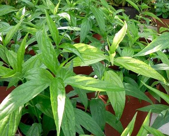 披散草本。茎具细致纵纹,嫩枝被短茸毛。叶披针形或卵状披针形,略弯曲呈镰状,长4~11厘米,全缘或有齿。花暗红色,为下垂的聚伞花序生于枝顶,苞片和小苞片均小,线形;萼片5,线状锥尖;花冠管长,肢2唇形;雄蕊2。蒴果长椭圆形,长约0.5厘米,有短柄;种子4颗。夏、秋采。