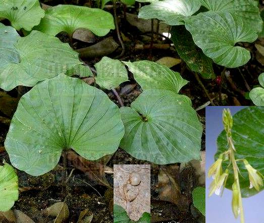 【别名】独叶莲(《陆川本草》),独脚莲(《南宁市药物志》),珍珠叶(《广西中药志》),坠千斤、铁帽子、山米子(《云南思茅中草药选》),青莲(广东)。