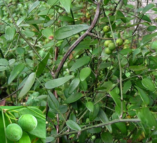 灌木,茎枝均具针刺。叶互生,硬革质,有柄,叶片长椭圆形,长1.2~2.8厘米,宽2~6毫米,先端钝,基部圆形,全缘,基出脉3条,网脉明显。伞形花序腋生。浆果。