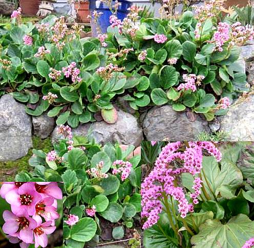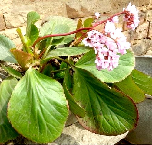 ②厚叶岩白菜:多年生草本,和上种近似。高20~60厘米。叶近基部互生,厚革质,长卵圆形或正圆形,长3~35厘米,宽2.5~30厘米,边缘具粗浅不等的圆齿或近全缘。花瓣淡红色,圆形;雄蕊10~12。