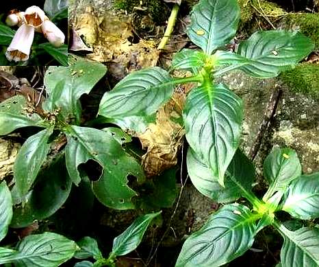 多年生草本。根生叶4~6枚,有肉质叶柄,长3~6厘米;叶片卵形或长椭圆形,质厚,边缘有不规则的浅锯齿,下面有白斑。花茎顶端单生1花,或上部分成两枝,每枝顶生1花。蒴果线形,长3.5厘米,2瓣裂。种子纺锤形,淡棕色。