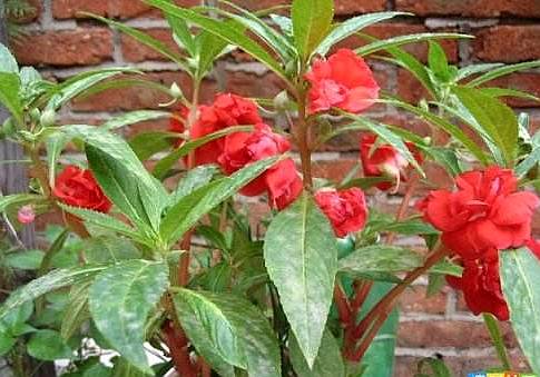 一年生草本,高20~25厘米。茎直立,有深纵沟及翅状突起。叶互生;叶片卵状矩圆形或卵状披针形,长8~11厘米,宽3~4厘米,先端渐尖或钝,基部楔形,边缘有圆锯齿,侧脉约5~7对,明显。花梗腋生,长约2厘米,在中部有2枚对生的苞片;萼片2,绿色,卵圆形,有短尖头,其中1枚较长,先端卷曲;花瓣橙红色或微带淡色纹,长3厘米,距短,呈钩状,花中部背脊隆起;雄蕊5,围绕子房,花药联合;子房上位,花柱短。蒴果长椭圆形,无毛。种子鲜红色。花期秋季。