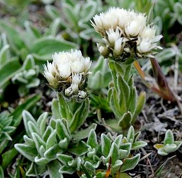 多年生草本,高15~30厘米,全株密被灰白色绒毛。根茎木质化,分枝。茎丛生,直立。叶片线状长圆形,长2~11厘米,先端钝或微尖,基部楔形,全缘。基生叶及下部茎生叶具长柄,中部以上茎生叶无柄,基部下延成茎翅;头状花序多数,聚成复伞房状;总苞钟状,径5~8毫米,总苞片数层,上部白色,下部淡褐色,干膜质;花杂性或雌雄异株,雌花细管状,结实,两性花管状,不结实。瘦果黄褐色,长圆柱形,长不足1毫米;冠毛白色,一层,粗毛状。